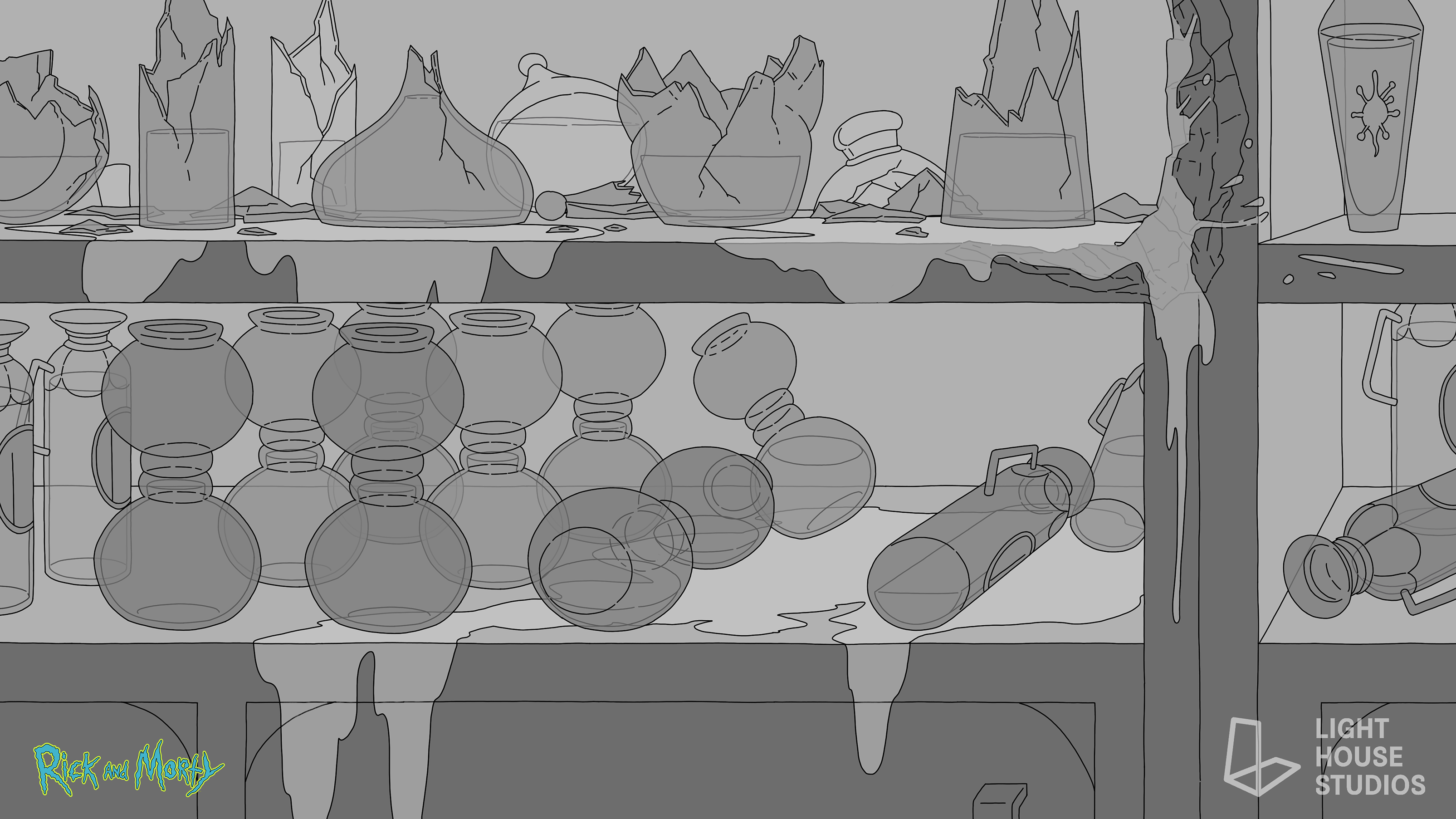 I worked as a Lead Layout Artist on Season 7 of Rick and Morty. Leading a team of four artists, I ensured layouts adhered to client standards whilst also producing layouts in clean line in Photoshop.